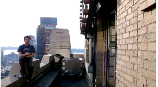 To prove it, here's a pic of yours truly sitting beside the Paramount Building clock on the 31st floor, Times Square. Picture by Liam Harrison.